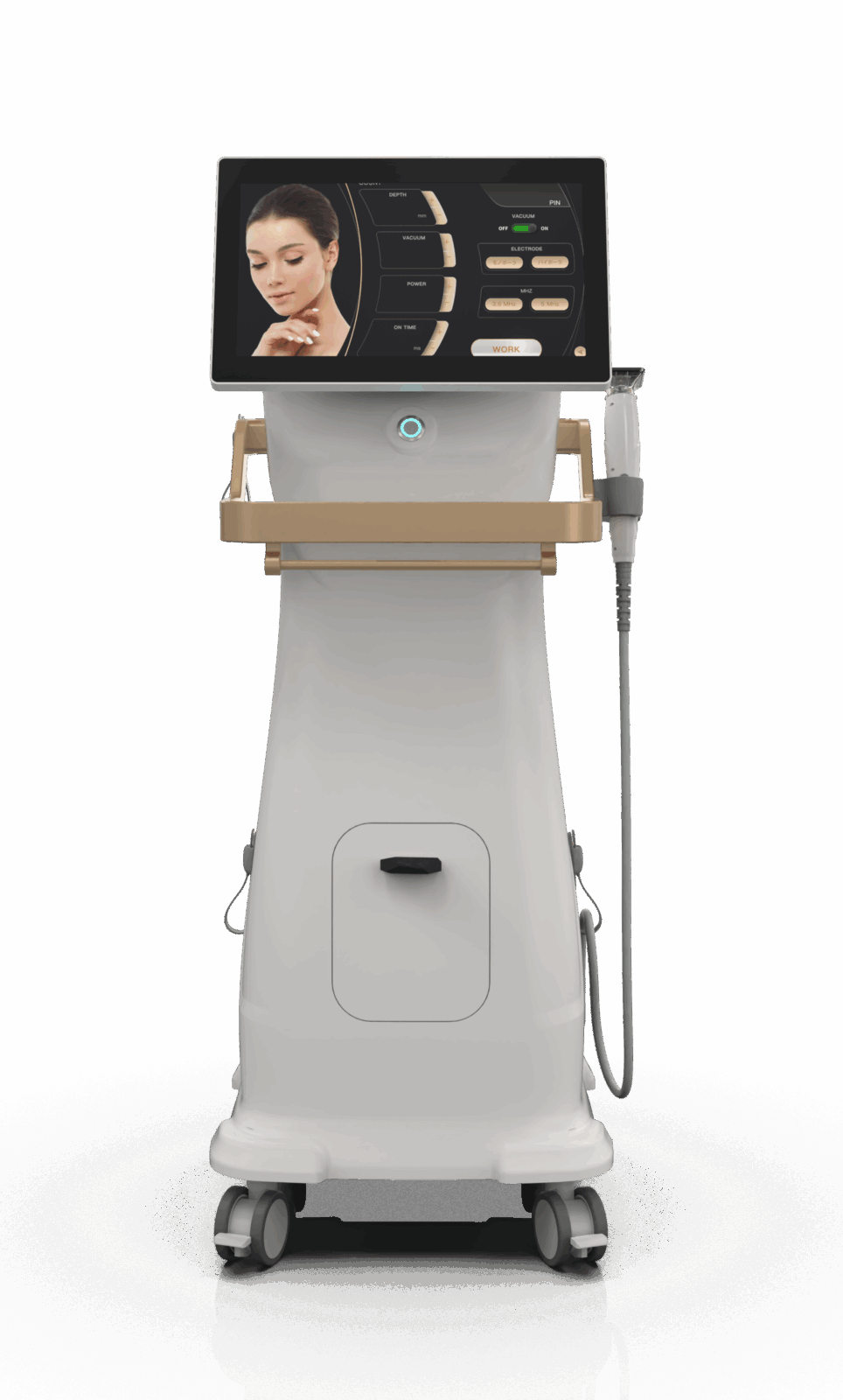 特徴: ラジオ波(RF)を用いて、ハイフよりも浅い層(真皮層〜脂肪層)に広範囲の熱を加えます。